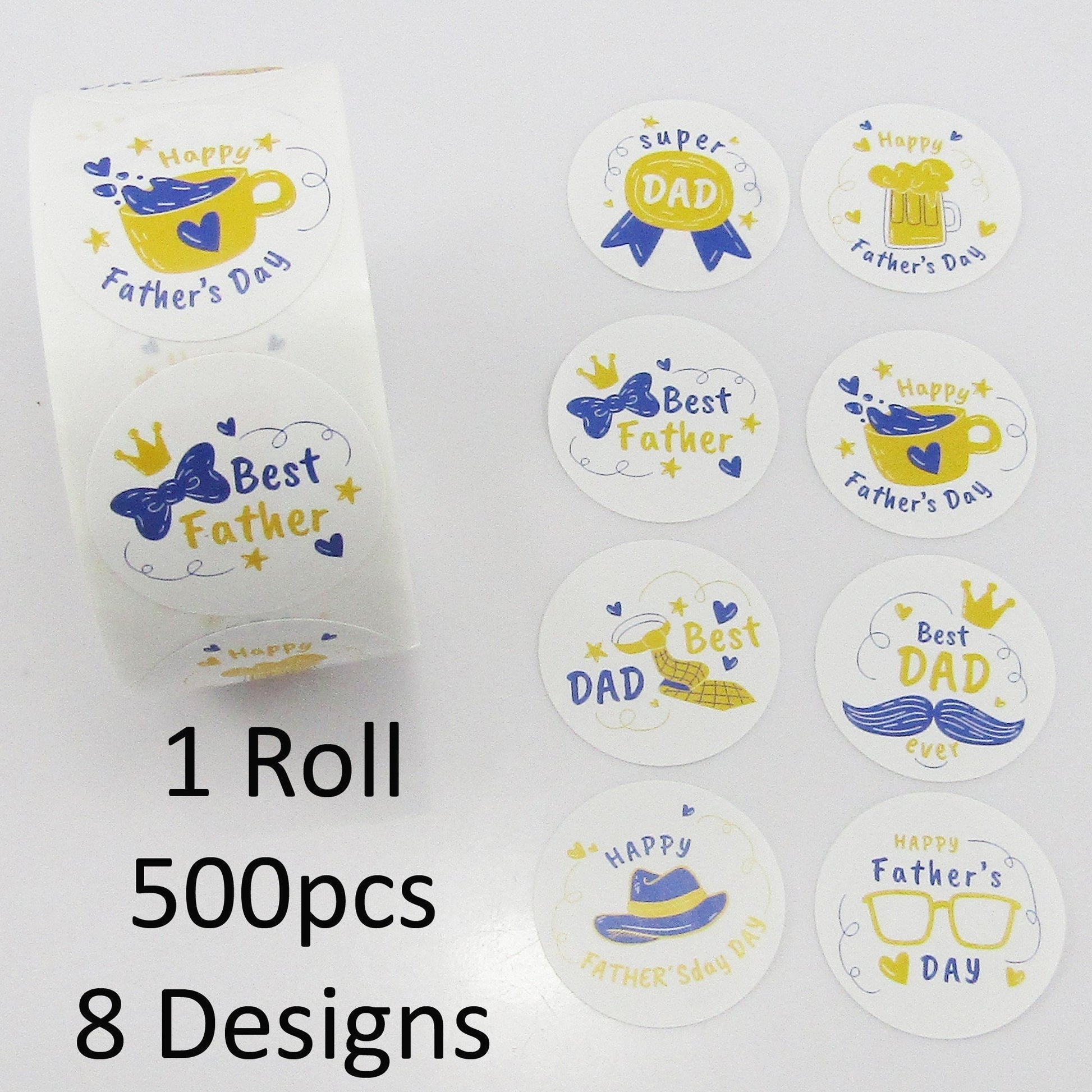 Roll of 500 Father's Day Various Designs Self Adhesive Paper Sticker Labels 25mm