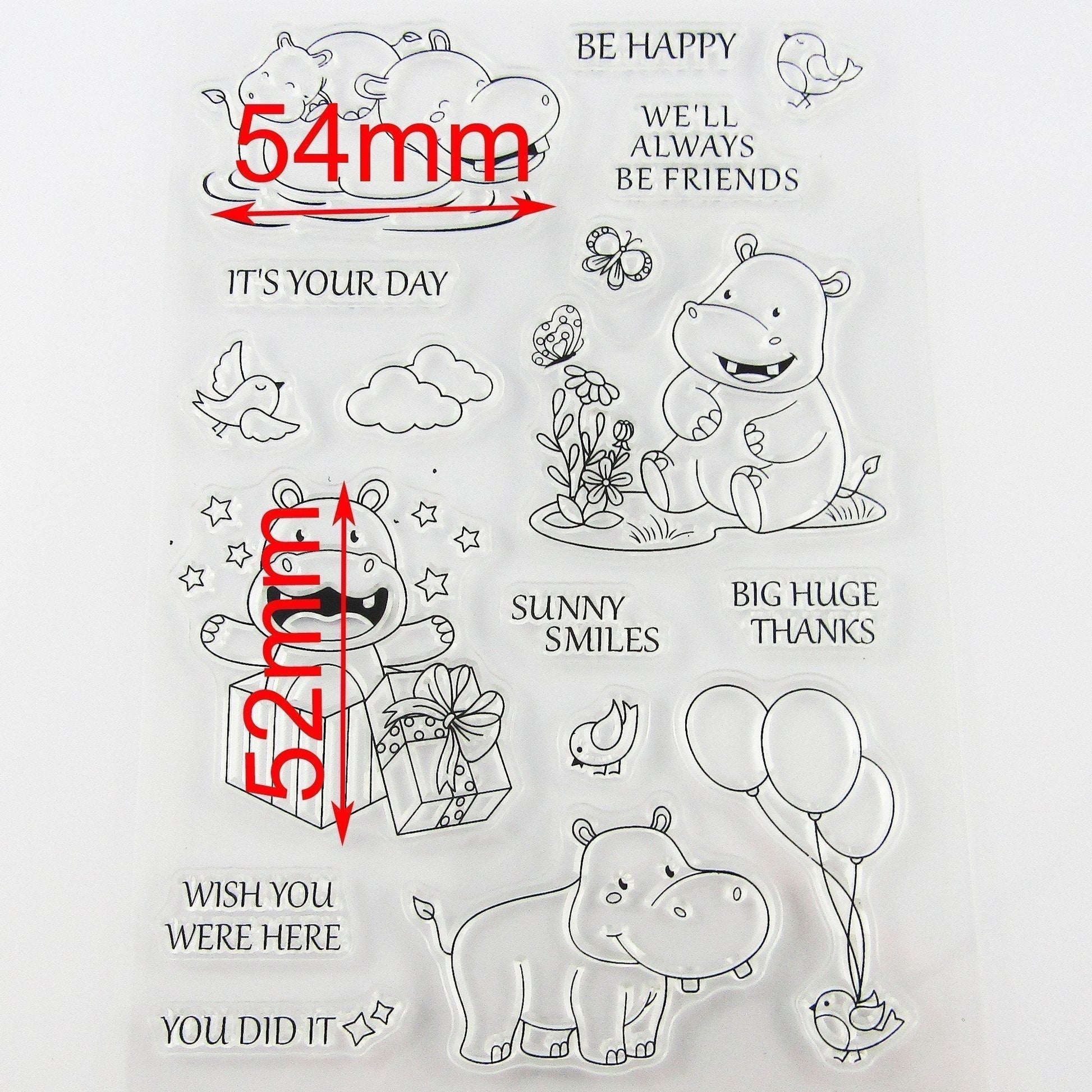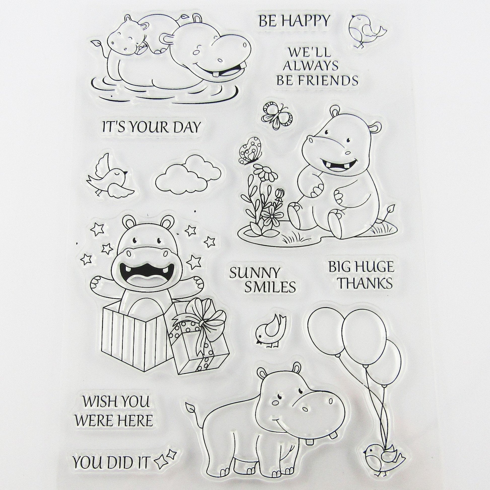 Hippo Hugs Clear Stamp Sheet Silicone Rubber Journal Scrapbooking Card Making