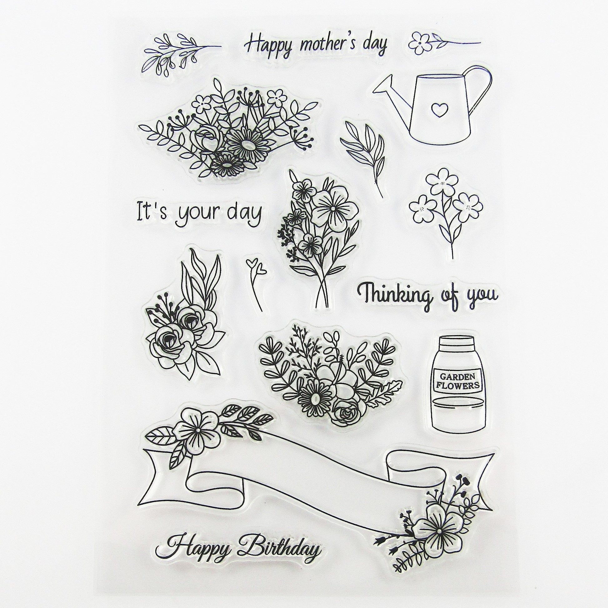 It's Your Day Flowers Clear Stamp Sheet Silicone Rubber Journal Scrapbook Cards