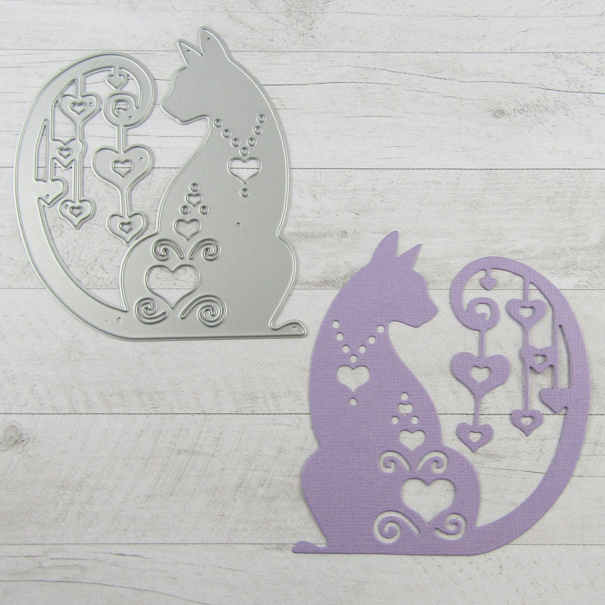 Love Heart Cat Cutting Die Carbon Steel Scrapbooking Card Making etc