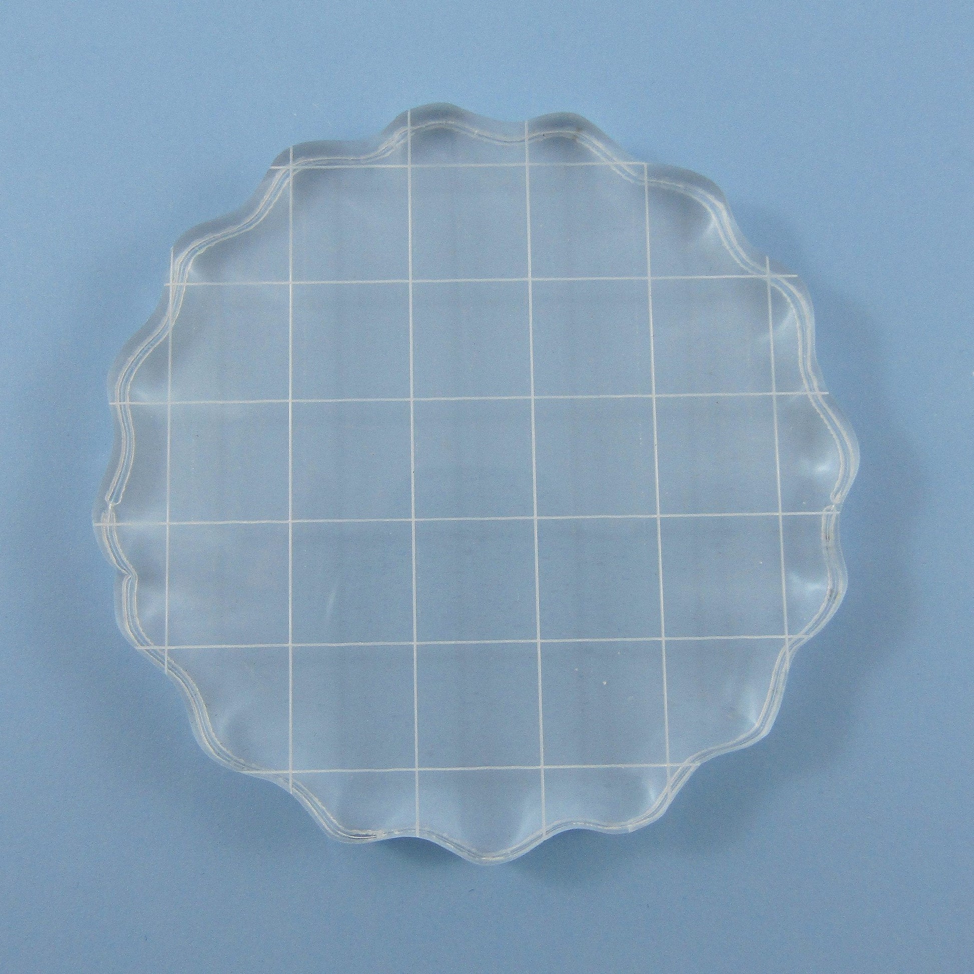 Medium Round Acrylic Clear Stamp Block with Grid Lines for Silicone Stamps 49mm