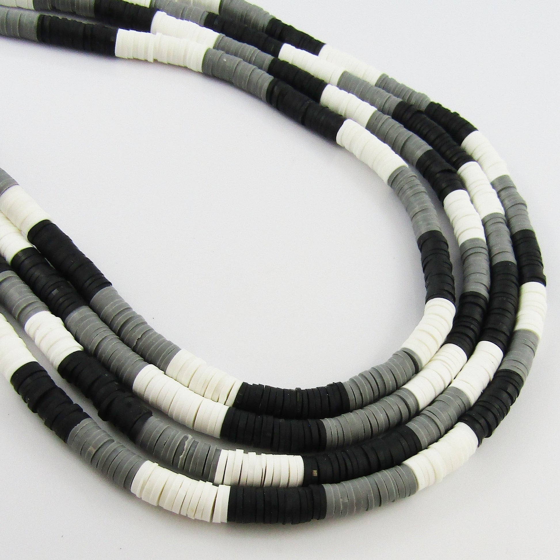One Strand 290pcs 3 Colour Black White Grey Polymer Clay Bead Katsuki Bead 6mm