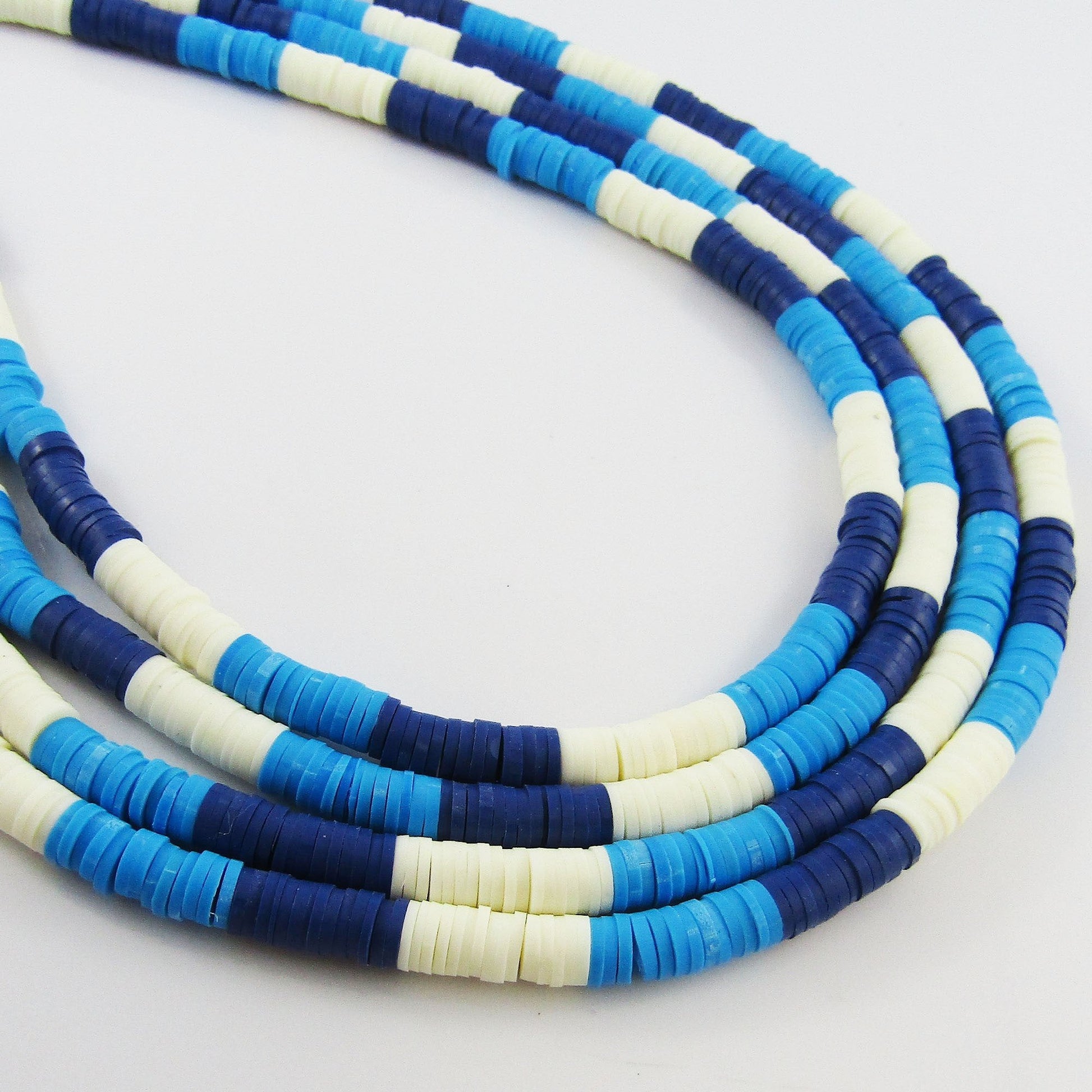 One Strand 290pcs 3 Colour Blue White Navy Polymer Clay Beads Katsuki Bead 6mm
