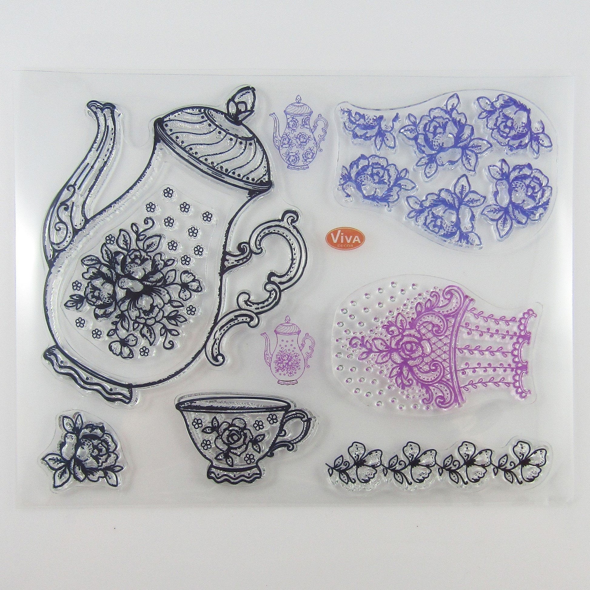 Tea Time Tea Set Clear Stamp Silicone Rubber Scrapbooking Card Making