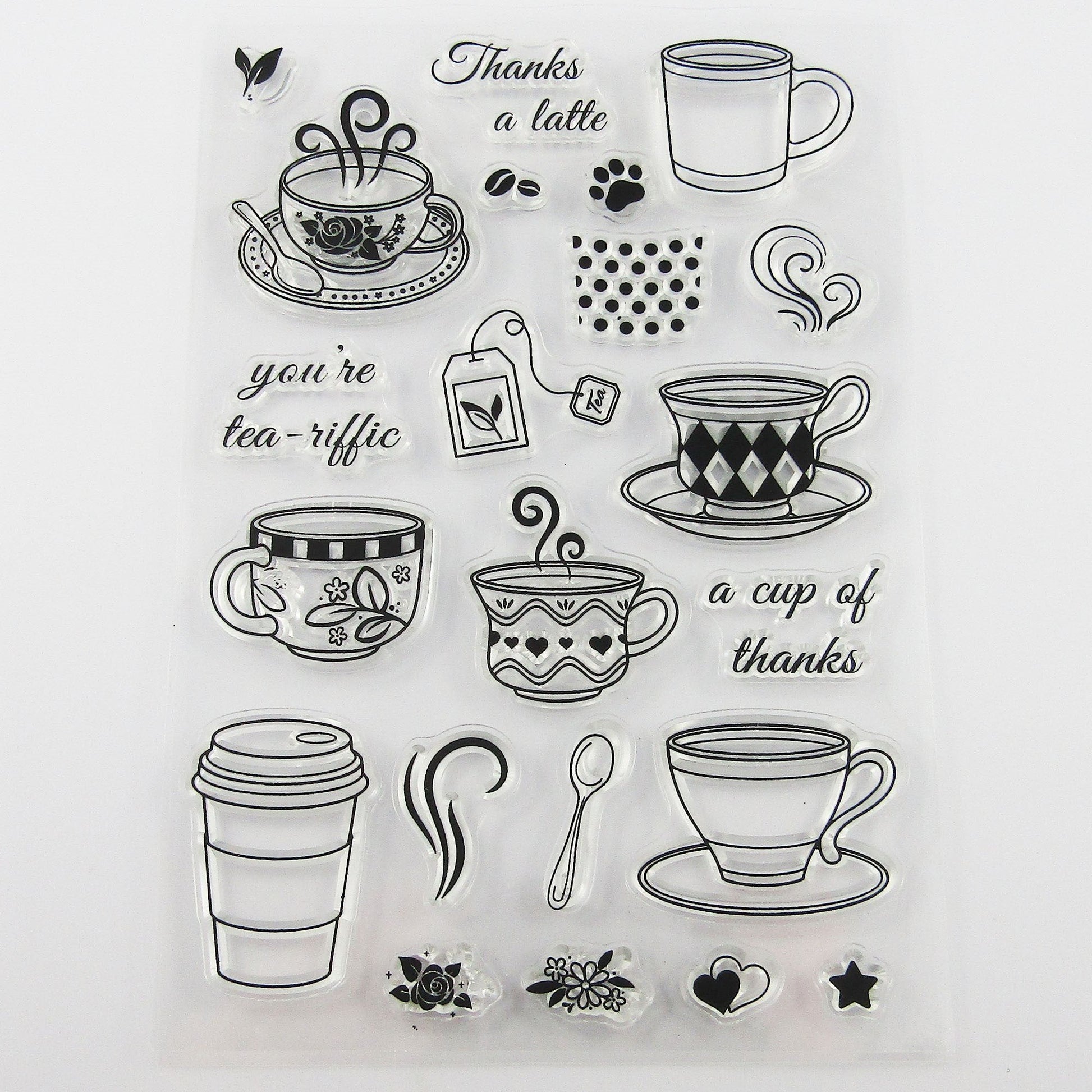 Thanks a Latte Tea Coffee Clear Stamp Sheet Silicone Journal Scrapbook Cards